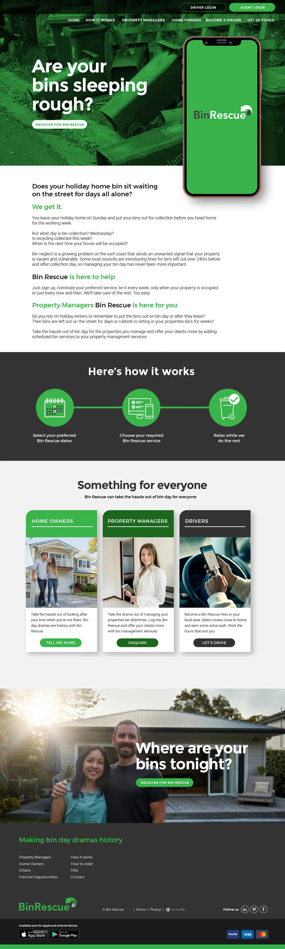 Bin Rescue came to us with a start-up business idea to provide a bin service for people that needed their bins taken out and brought back in. They wanted an easy to use app so customers could book the service and drivers could complete it.